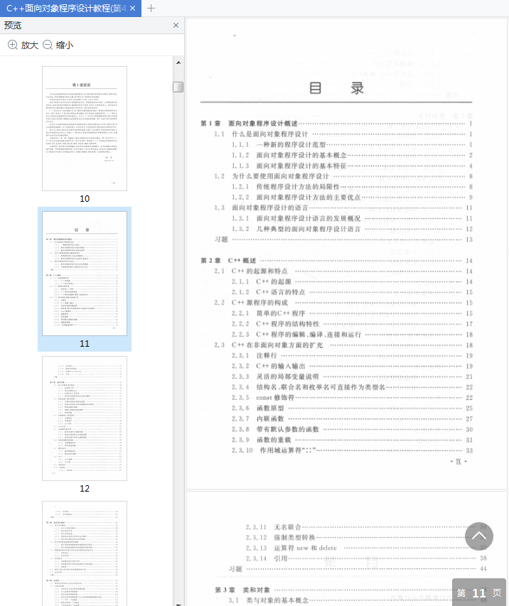 本教材是根据教学需要编写的,希望最大限度地做到定位准确、取材合适、深度适宜。目前,C++教材很多,但大多数都是为没有学过C语言的学生编写的。据作者了解,当前无论在大学里还是在社会中,都有相当一批人已经学过C语言。很多高校的培养计划,仍是先开设C语言程序设计,随后再开设C++语言程序设计(必修或选修)。本教材就是为那些已经学过C语言,且具有一定程序设计基础的大学本科生编写的。因此,本教材是符合高校的教学需要的。在取材方面,舍去了C语言中的内容,只讲C++面向对象程序设计部分的内容。这样既节省了教学时间,也减轻了学生的经济负担。