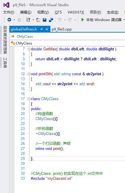 #pragma once //防止多次包含同一个头文件 #include #include using namespace std;//找出两个中更大的一个double GetMax( double dblLeft, double dblRight ){ return dblLeft > dblRight ? dblLeft : dblRight;}void printSth( std::string const & str2print ){ std::cout