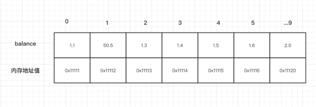 double balance[] = {1.1,1.2,1.3,1.4,1.5,1.6,1.7,1.8,1.9,2.0}