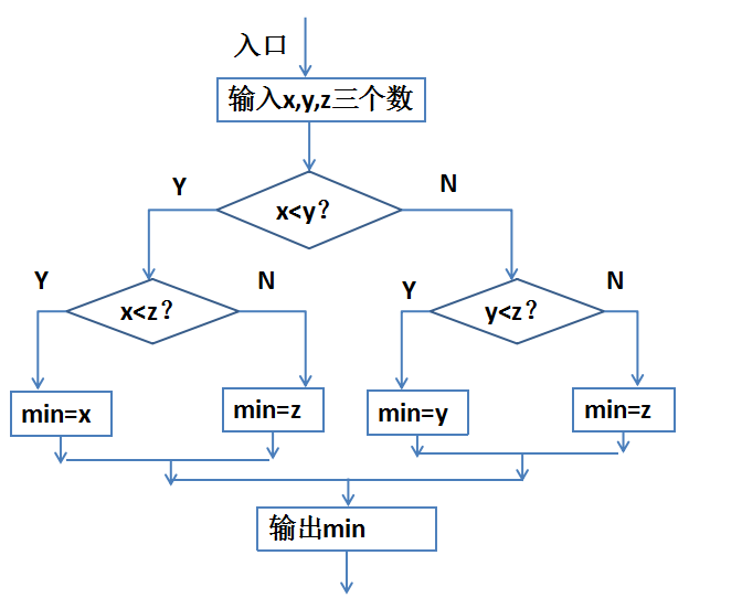 16. 选出三个数中最小数的算法流程图如下图所示:
