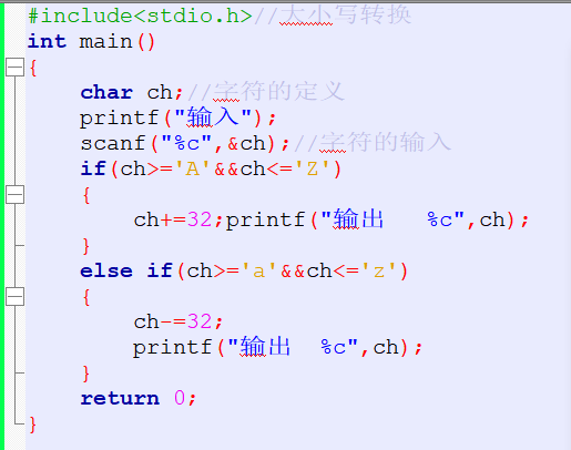 输入一个字符 ch,如果 ch 是大写字母,将它转成对应的小写字母,如果是小写字母,将它转换成对应的大写字母。