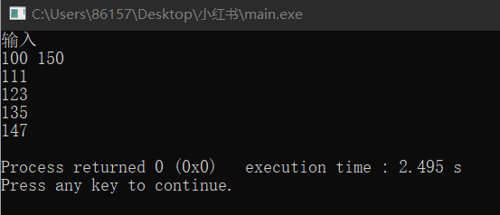 输入 100 150