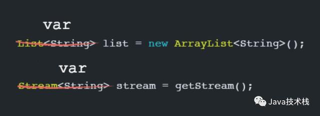 List list = new ArrayList ();Stream stream = getStream();将被下面这个新语法所取代: