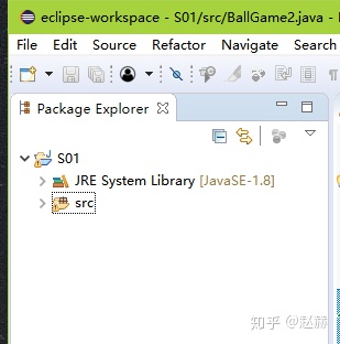 新建项目完成,其中的src文件夹用于存放源代码。显示JDK版本是JavaSE-1.8。