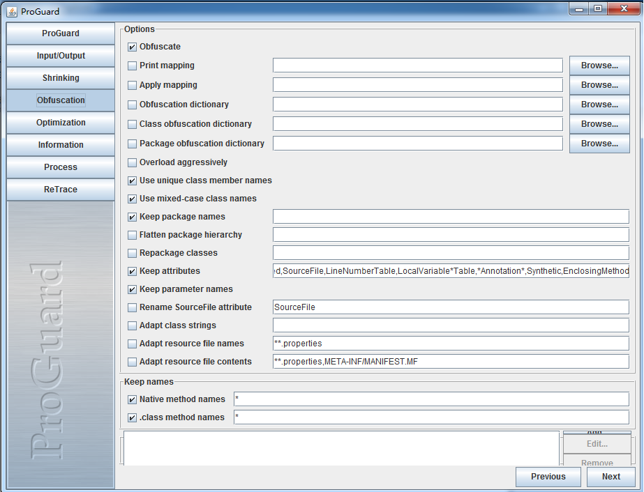 点击“obfuscation” ,设置如图。(可根据需要设置,这里只是我的配置)