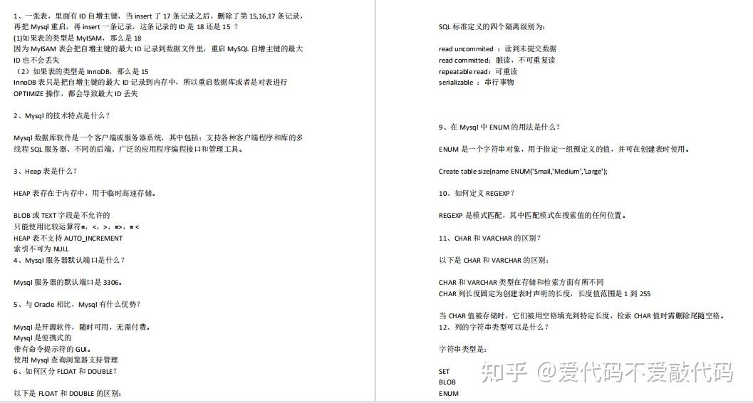 L 相关存储引擎。MySQL 索引实现原理。MySQL 数据库锁。MySQL 的 SQL 调优。MySQL 分表分库全局 ID。Mysql的技术特点是什么?Heap表是什么?Mysql服务器默认端口是什么?如何区分FLOAT和DOUBLE?区分CHAR_LENGTH和LENGTH?请简洁描述Mysql中InnoDB支持的四种事务隔离级别名称,以及逐级之间的区别?在Mysql中ENUM的用法是什么?如何定义REGEXP?CHAR和VARCHAR的区别?Mysql查询是否区分大小写?Mysql中有哪些不同的表格?什么样的对象可以使用CREATE语句创建?什么是通用SQL函数?MYSQL支持事务吗?mysql里记录货币用什么字段类型好Mysql中有哪几种锁?MYSQL数据库服务器性能分析的方法命令有哪些?