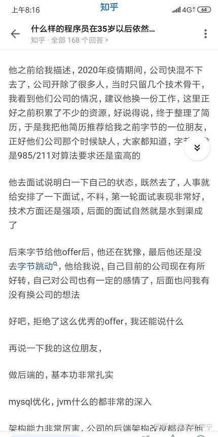 之前有看到过一篇这样的帖子:什么样的程序员在35岁以后依然被公司抢着要?