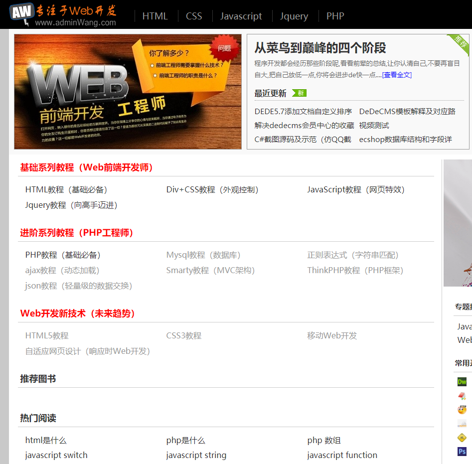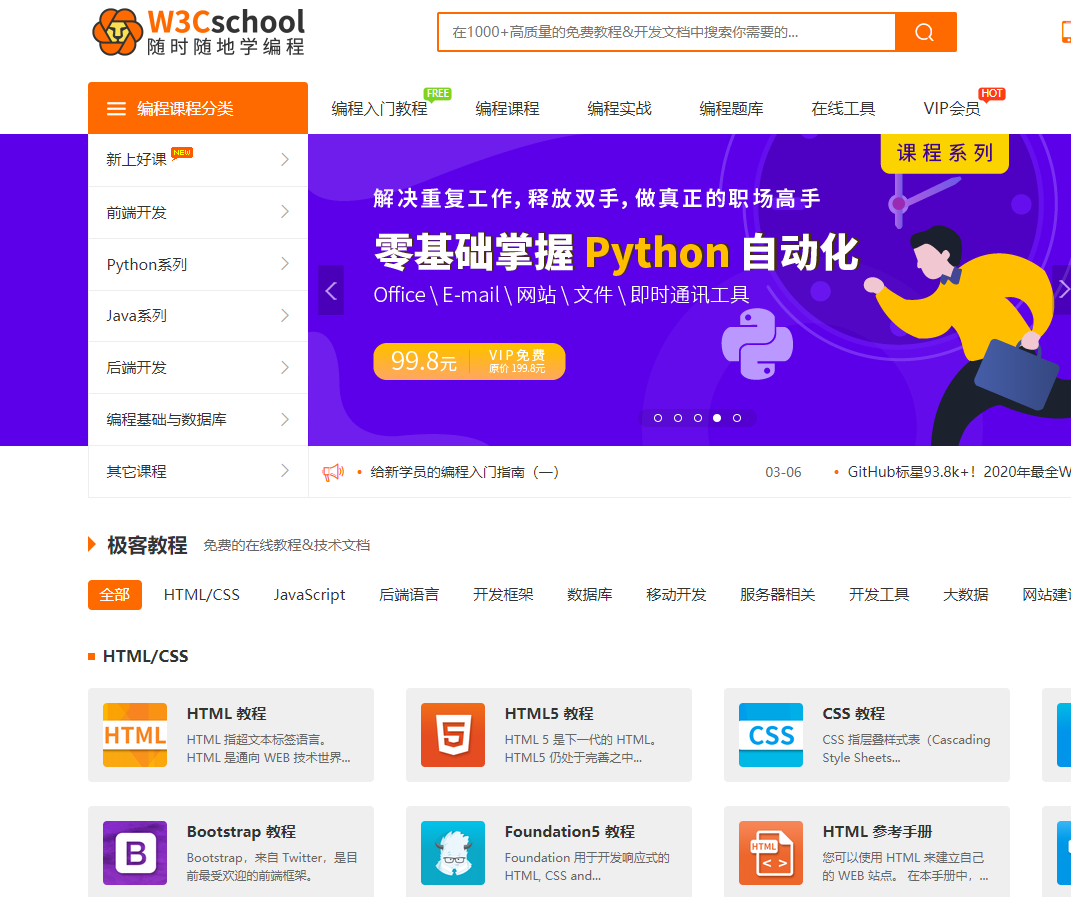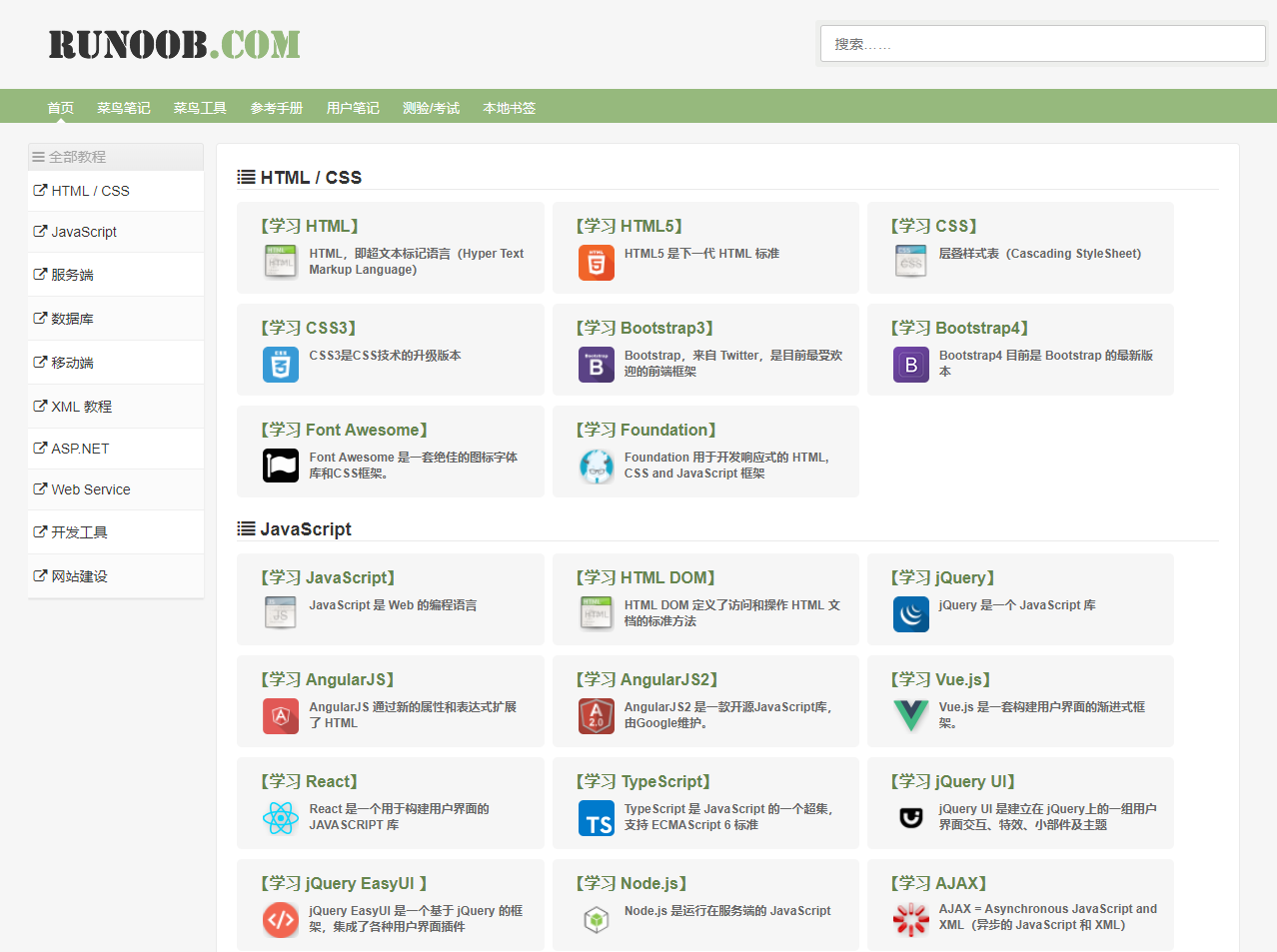 这个网站也是比较常用的,有各种实用的教程,如果你想快速入门一种语言的话,可以到这看看。