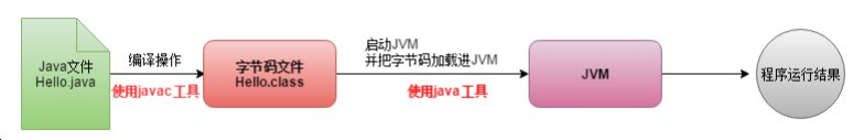 Java编译后生成和平台无关的.class文件jvm是平台相关的在这里进行编译操作的工具叫做javac,启动JVM并把字节码加载进JVM的工具叫做java