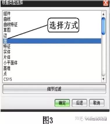 1*,点击“信息”→ “对象 ”(下图 1 所示),弹出类选择对话框(下图 2所示),在“过滤器”中选择点击“类型过滤器” 图标,弹出对话框选择 “面”方式(下图 3 所示),此时鼠标就可以选择了,选择零件的最上表面(红色部分) (下图 4 所示)确定或中键退出对话框,同时弹出信息对话框(下图5 所示)。