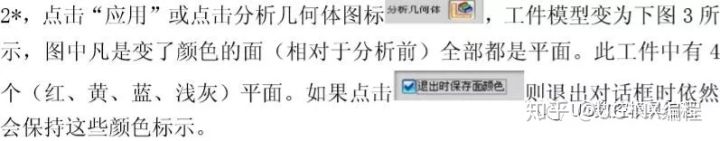 3*我们也可依次点击其它的面,信息都会显示出来。例如我们同时点选最底 面和小凸台上表面(图中红色部分),分析结果显示为(I = 0.017452, J= 0.00 ,K = 0.99984),这时就会发现这两个面不是平面。而我们 一般情况下就会想当然的认为是平面。