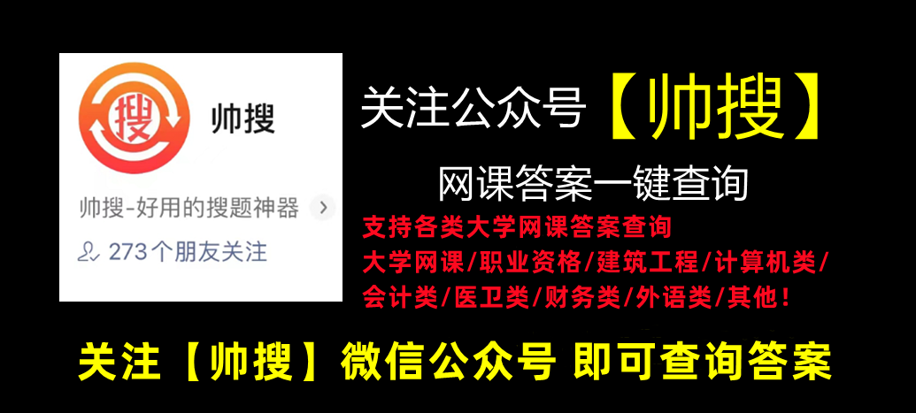 考试遇到很多不会做的题目?现在你可以使用帅搜-公众号,可以快速的搜索众多考试试题,每一个题目都基本上能搜到,让搜题更加轻松!