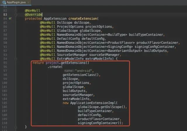 创建AppExtension,name是android,最终是保存到ExtensionsStorage类里面的一个叫extensions的LinkedHashMap变量里面,大家感兴趣可以去看源码。