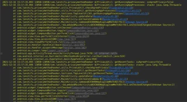 理论上我们也可以使用运行时hook技术,实现线下快速检测隐私方法调用以及获取调用堆栈的功能。