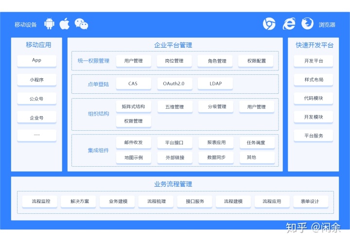 JNPF快速开发平台采用前后端分离技术、采用B/S架构开发,形成一站式开发多端(APP+PC)使用, 实现统一的权限管理、灵活的接口调用、拖拽式流程搭建等操作,使用业界领先地位的研发技术体系。