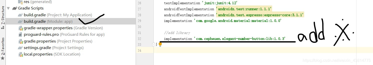 找大象图 build.gradle(Module:app) -------->最底下添加代码
