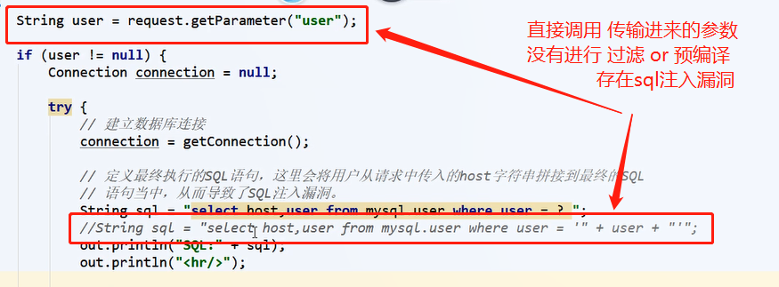 但并非 直接 调用 参数 的sql语句 就一定会存在 sql注入漏洞,因为代码中可能 还存在 过滤器。
