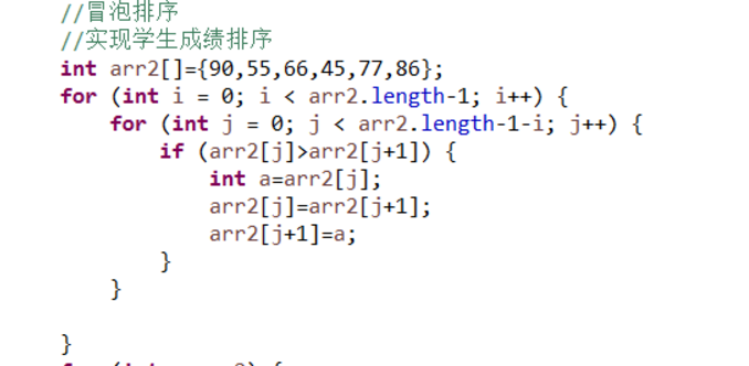 分析:通过使用遍历的方法对每个数字进行大小对比,将小的放在前方。