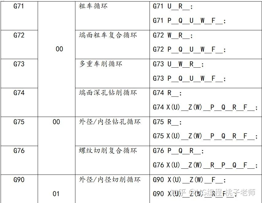 ④G代码按组号显示,对于表中没有列出的功能指令,请参阅有关厂家的编程说明书。