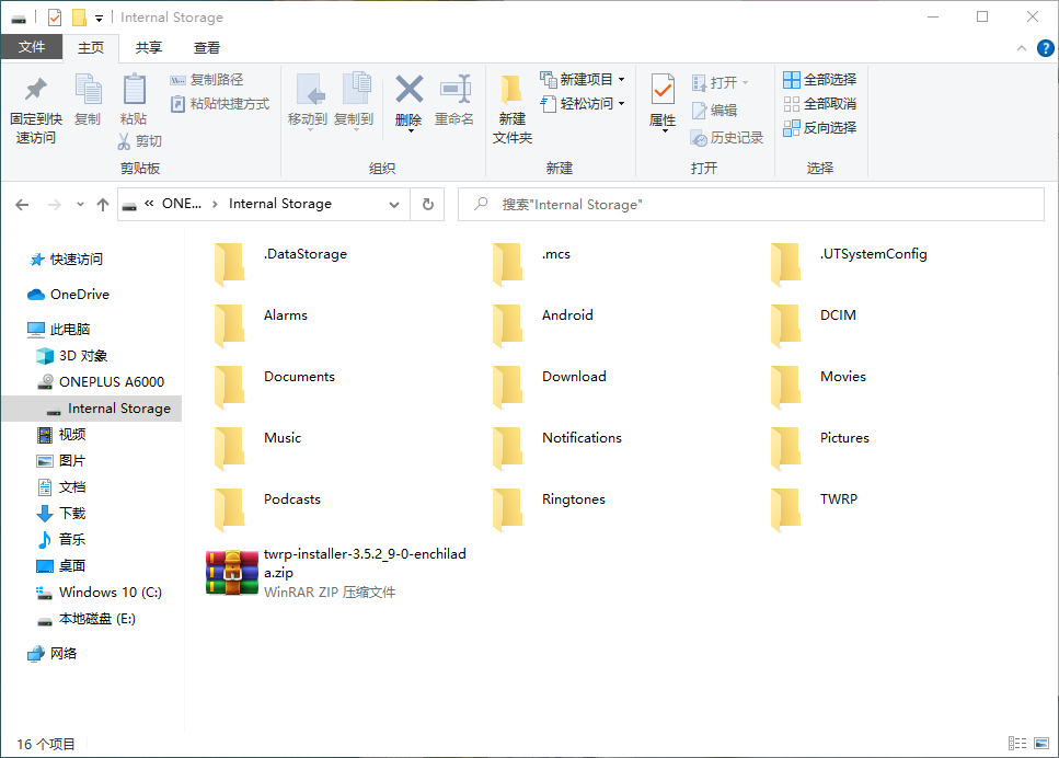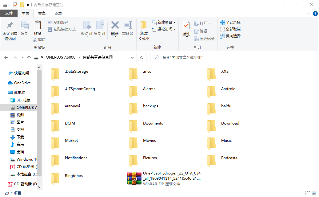 将氢OS安卓9.0.8官方Rom包复制到内部共享存储空间的根目录