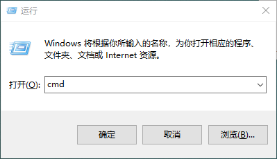 ②键盘按下Win+R打开运行界面,输入cmd,点击确定以打开命令行窗口(命令行的打开方式之后不再赘述)
