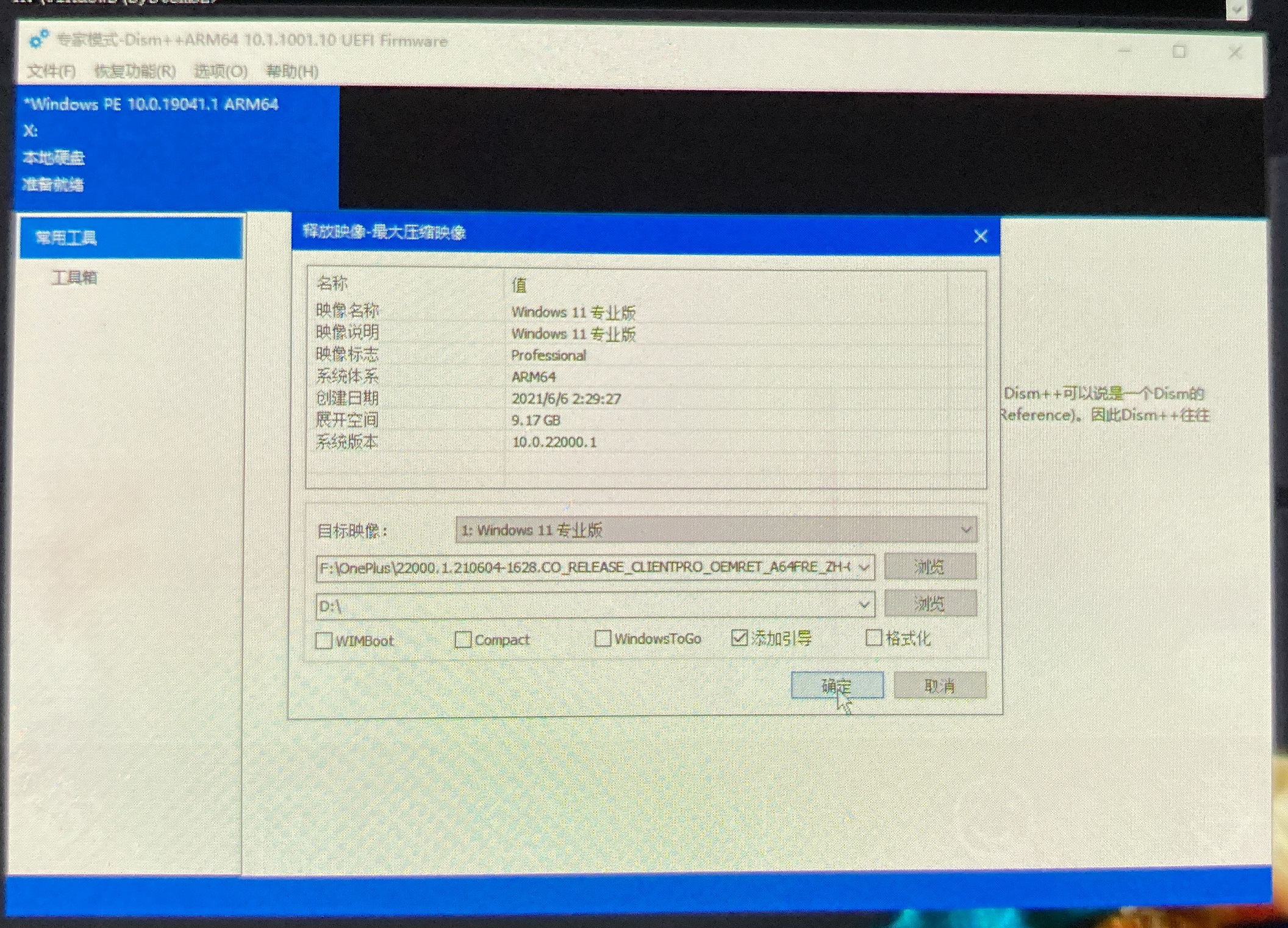 勾选添加引导,点击确定,耐心等待镜像安装完成
