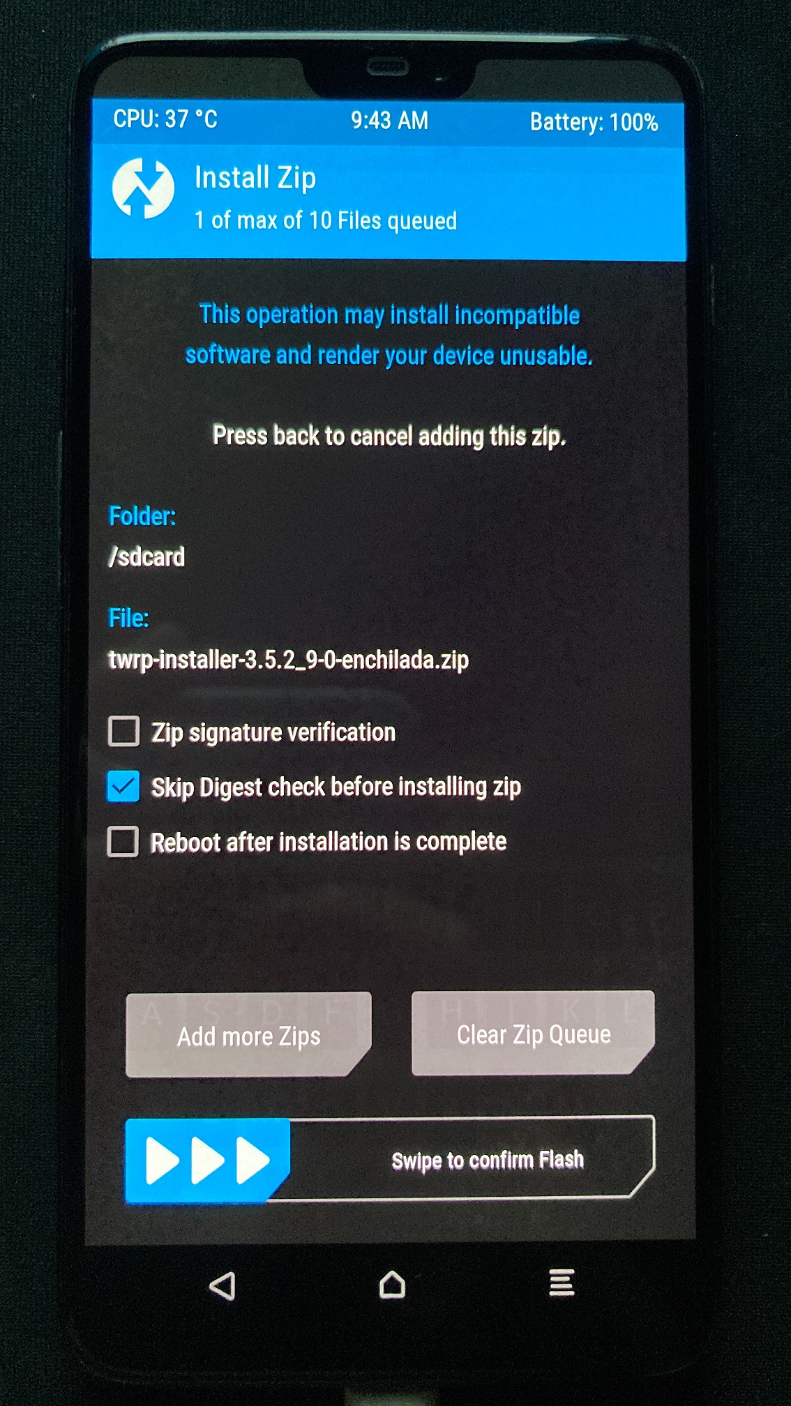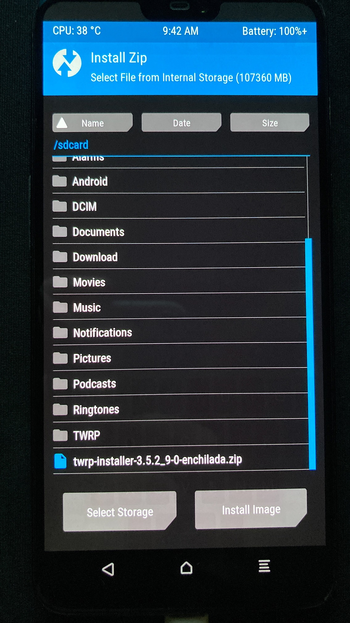 选择永久TWRP包twrp-installer-3.5.2_9-0-enchilada.zip
