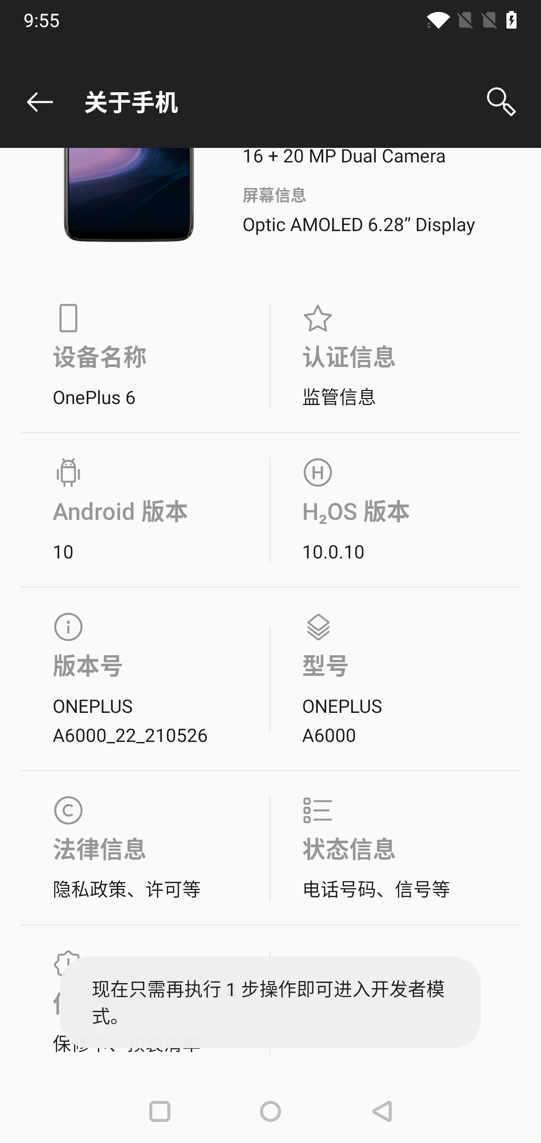 1.本教学使用一加6(8G+128G)手机在Hydrogen OS 10.0.10基础上进行操作,如系统版本低于安卓10请务必先跳至本文的第三部分的(3)4。如果在过程中因误操作或者其他原因,引起包括但不限于变砖死机等在内的问题,导致无法恢复至上一步,请直接跳至本文的第三部分。