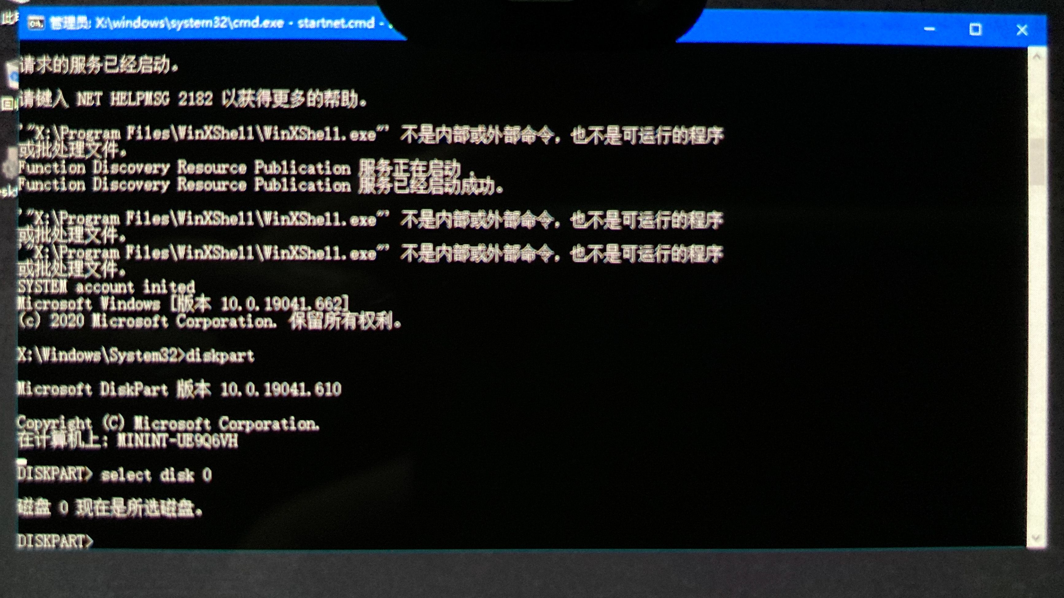 mkpart esp fat32 6559MB 7000MB mkpart pe fat32 7000MB 10000MB mkpart win ntfs 10000MB 70GB mkpart userdata ext4 70GB 125GB以创建新分区,提示Ignore/Cancel时输入Ignore