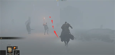 3、当到如图所示的位置,我们沿着正中间走。