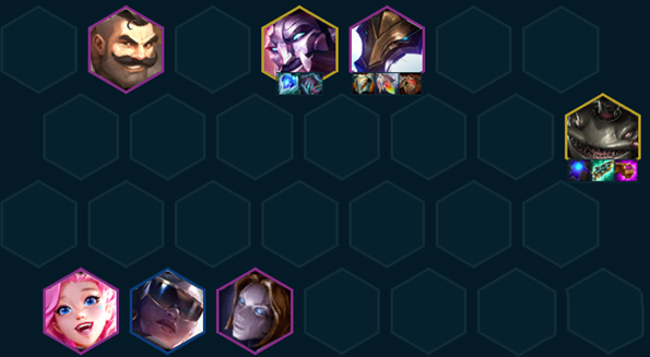 中期运营4-1上七,补一张机器人开2极客,不搜卡白嫖补充质量迅速上八。有蔚、布隆等战力比较高的前排也可以直接单挂上场,如果阵容质量不够就搜出2星卢锡安+2星薇古丝稳血。也可以纯约德尔枪过渡给塔姆吃小孩~