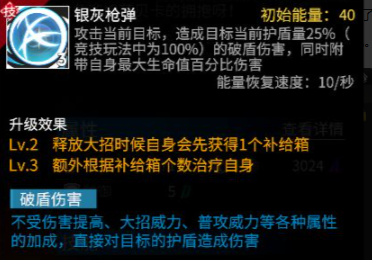 萝贝卡大招攻击当前目标,对目标造成自身最大生命值百分比伤害的同时,还会额外附带25%的破盾效果,在PVP玩法中破盾效果更是达到了100%,释放大招后自身会获得一个补给箱,用于连携触发被动效果,并且将根据自身所携带的补给箱数量,为自身提供治疗。