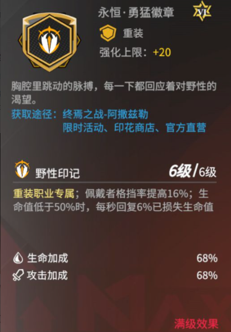 如前所述,萝贝卡的生存时间越长,其被动带来的收益就会越高,且其最大生命值会影响大招和被动,搭配生命、急救或者防御套装可以一定程度上再次扩大收益。徽章方面,推荐勇猛徽章,它能够使得萝贝卡的坦度再次提升,萝贝卡的被动触发后也能使勇猛徽章的治疗效果增加,两者的结合度可以说是十分的高。
