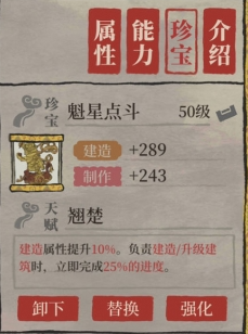 孟好学装备时建造属性提升10%。负责建造/升级建筑时,立即完成25%的进度。