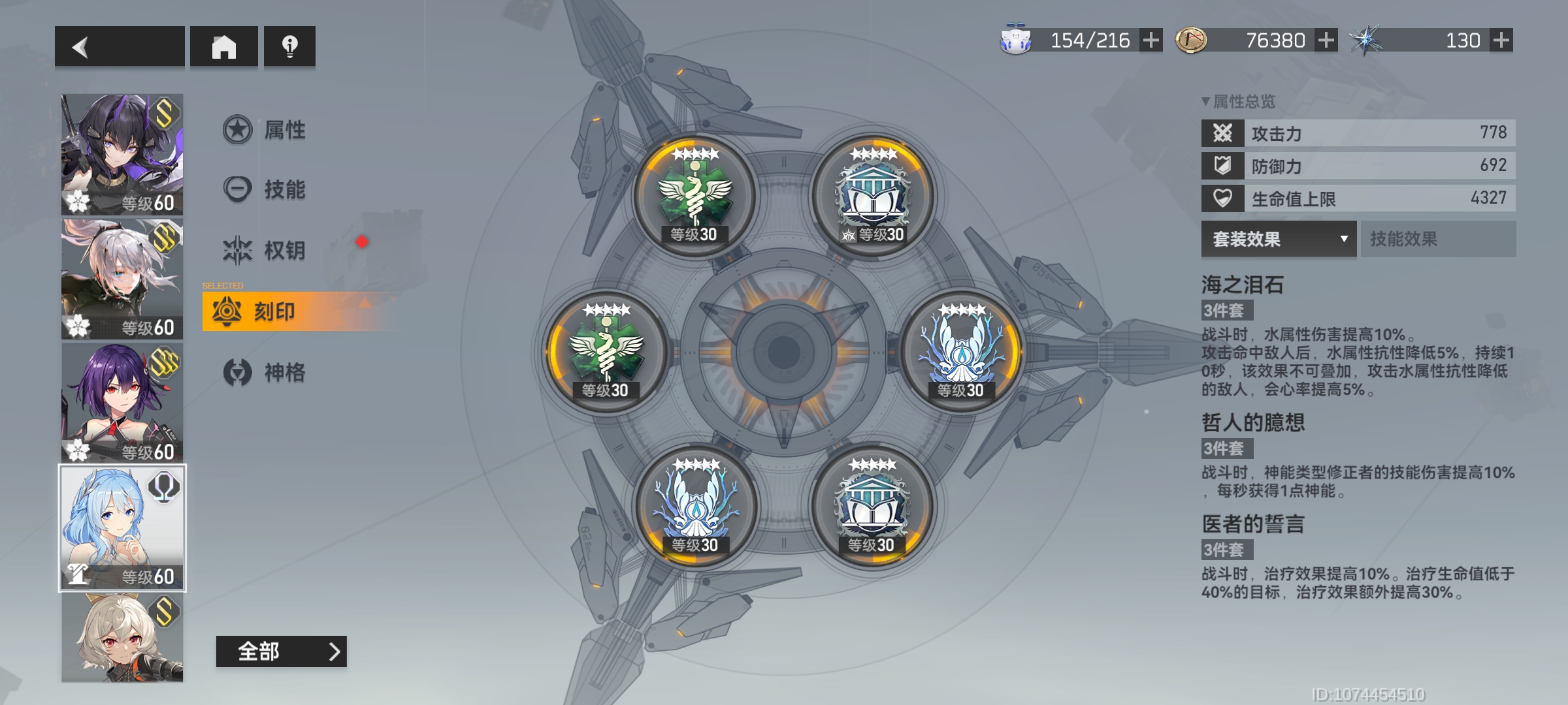 于是具体的刻印搭配就是12医者35海泪46哲人