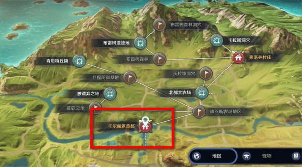 1、玩家进入游戏之后先打开大地图,找到卡尔佩恩北部直辖领,点击进入;