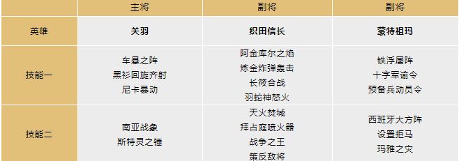 这个组合的主将与第一副将还是关羽和织田信长,关羽作为核心输出提供高额爆发,而织田信长为整个阵容提供点火。