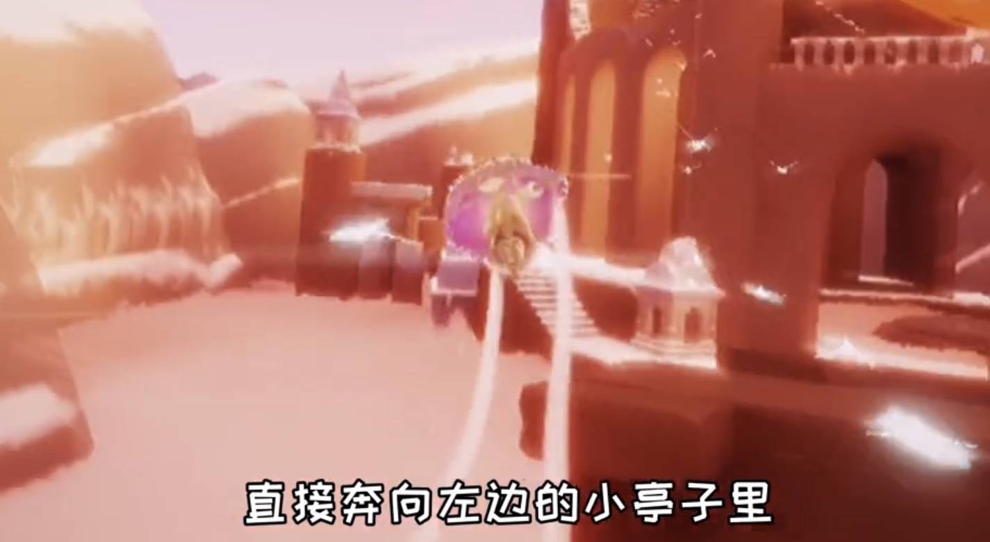 3、然后我们进入霞光城视角转到左边,飞向亭子那里。