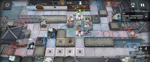 2、这关的难点很简单和轻松,一个是处理好自爆火的问题,另外就是处理好不同敌人的明晦的变化方便阻挡,作为BOSS的自在本身不构成什么威胁,真正的难点还是在3级词条限制下让近卫、术士和狙击这几位打手需要的cost巨幅增长而不好下干员,所以这里采用先锋+特种作为核心输出去应对。