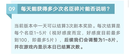我们从官方的回答中可以看到目前:一天可以结算三次剧本奖励,每次获得1至5片的名臣。