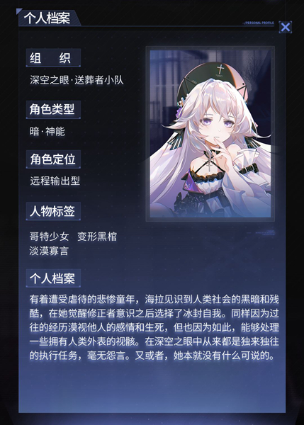 2、这个角色的外形是一个哥特风格的少女,有着非常可爱的形象。