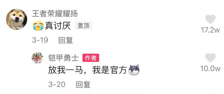 耀扬本人也在评论区出现了,然后铠甲勇士官方回复了一句放我一马,我是官方。