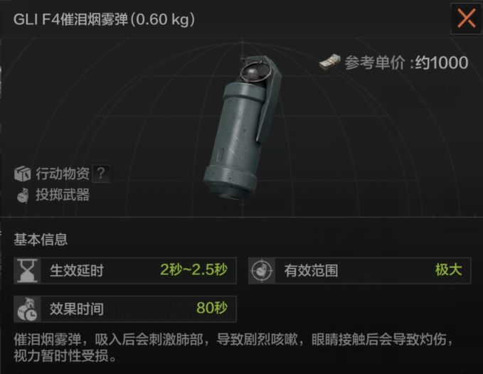 GLI F4催泪烟雾弹的效果较为特殊,在投掷后会持续80秒释放造成伤害和肺损伤负面效果的刺激性气体。