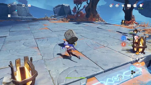 可以看到仪盘旁边有根发光的树枝,直接普通攻击打碎它,进入下一个节点的时候仪盘就会露出底下的部分,就可以正方向旋转到底进入第三个节点了。