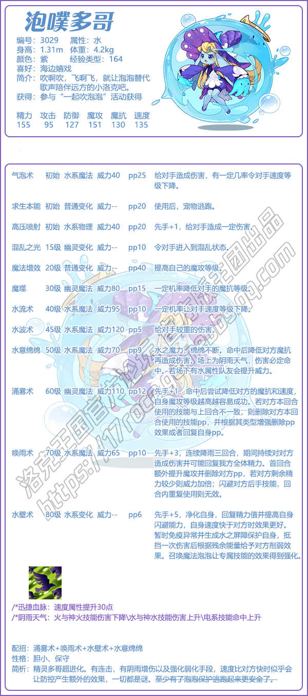 泡噗多哥是一个魔攻宠物,是精灵多哥超进化。