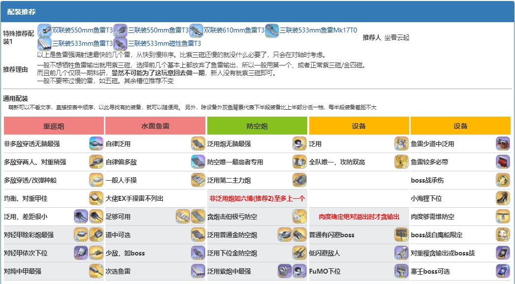 安宝强力的拉烟雾保人能力,需要通过发射鱼雷来触发,那么怎么让安宝更快的发射鱼雷,就成了她生存的核心。(下面依旧是云起佬的装备推荐)