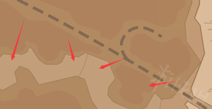 在玩家通过主线剧情修复好大桥之后,可以通过桥来到另一边的沙漠,这片沙漠的一半部分主要刷的怪就是三叉戟蝎。大致分布在图中标了箭头的地方。