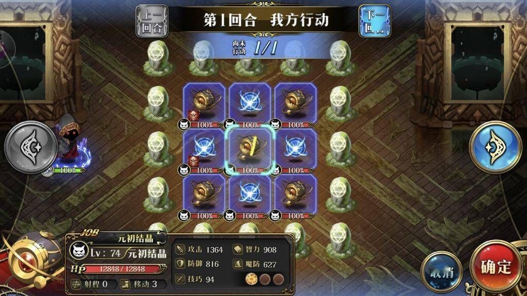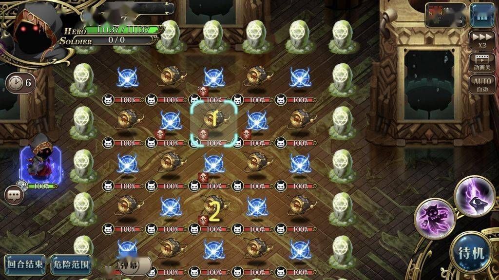 1技能十字2格AOE,1回合CD;2技能单体,无CD;
