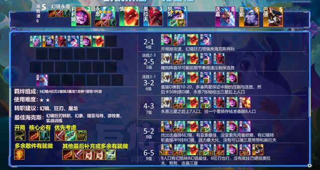 羁绊组成:6幻境4狂刃2重骑2屠龙1龙神1冒险1吟游