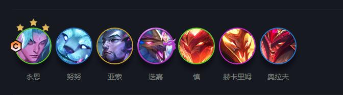 此阵容是2费赌狗主C,核心阶段在6级,6人口做出4狂战即可小成型吃连胜,直到D出3星永恩。3星到手之后全力上8级补强,就中期的强势段而言,永恩的强度堪称一流,3到4阶段稳定连胜。6到8级拉人口期间需要稳住血量,8级之后需要找5费亚索和10费幻镜龙达成补强,后期强度非常可观。至于吃鸡能力主要看阵容上限,通常是追9级做大羁绊,再单挂5费佐伊或是巴德,或是在8级找出3星奥拉夫和雪人。上限虽然比不过运营阵容,但是对赌狗来说已经非常优秀了,阵容下限非常高,运营正常都可以保前四,胡起来才能吃鸡。